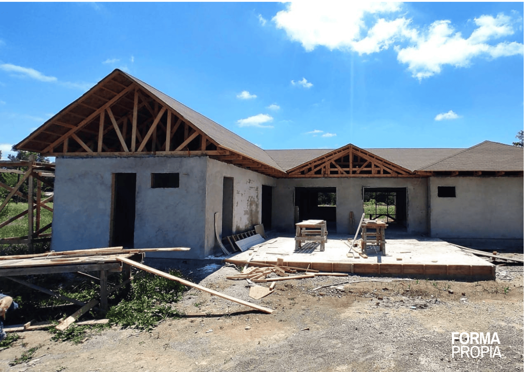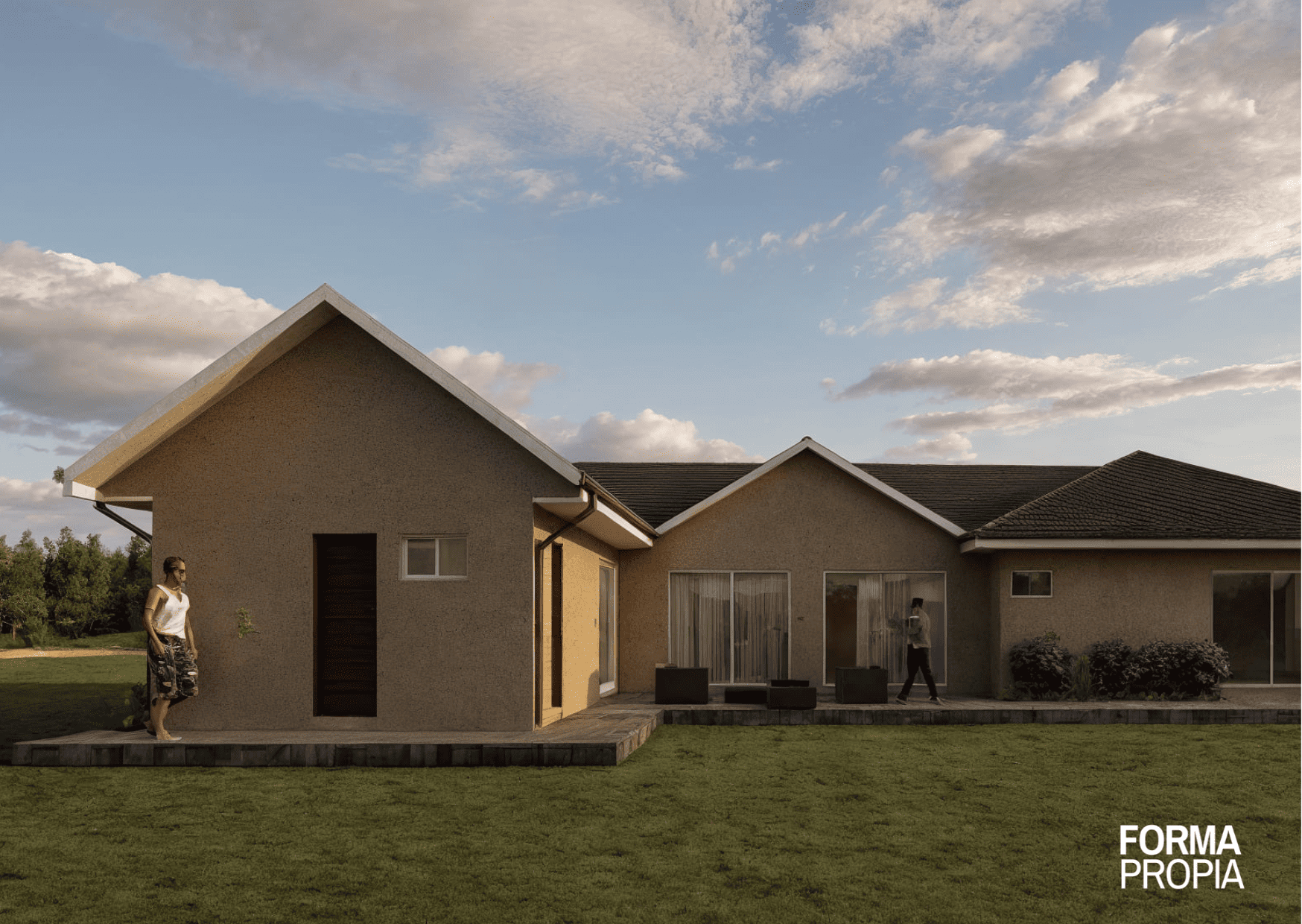 A partir de ese esquema base, nuestra labor consistió en ordenar y dar lógica constructiva al diseño, transformando su propuesta en un proyecto arquitectónico técnicamente viable y aprobado para ejecución.